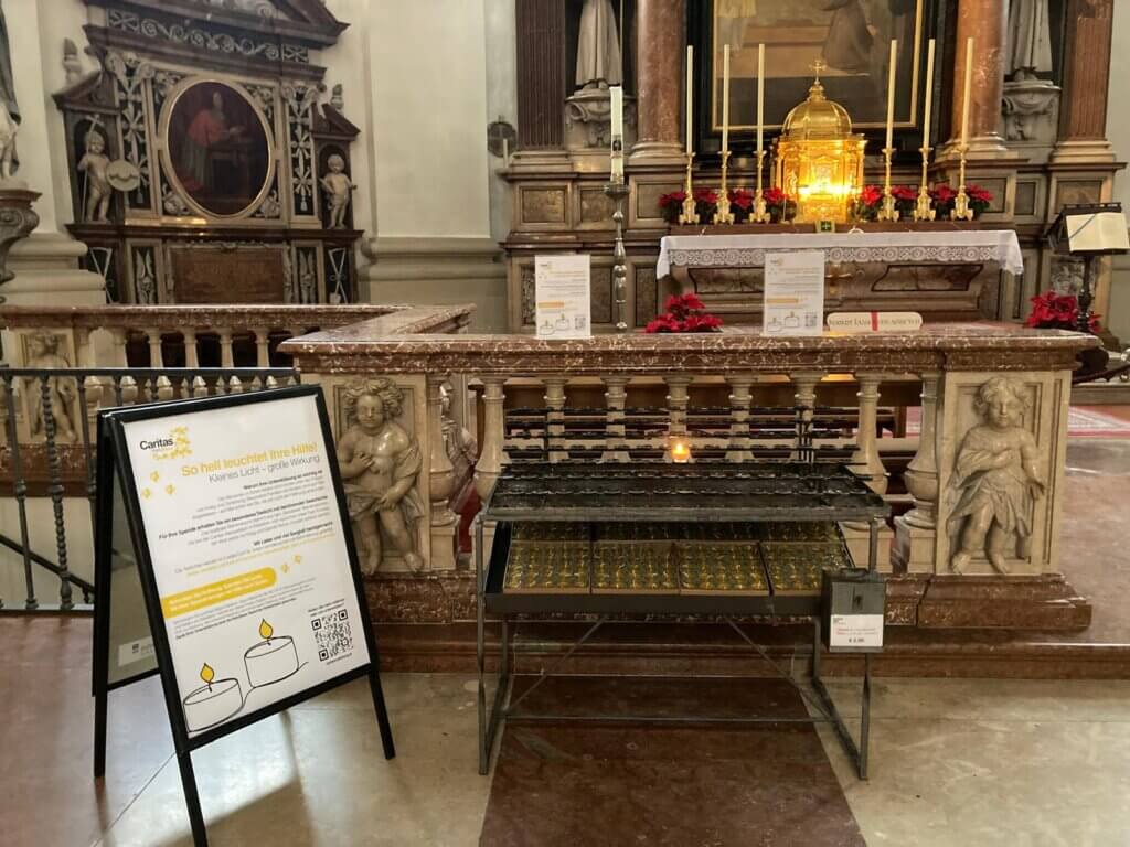 Die Kerzen werden aktuell im Salzburger Dom als Opferkerzen verkauft, den Erlös dürfen wir für Hilfsprojekte in Syrien verwenden.